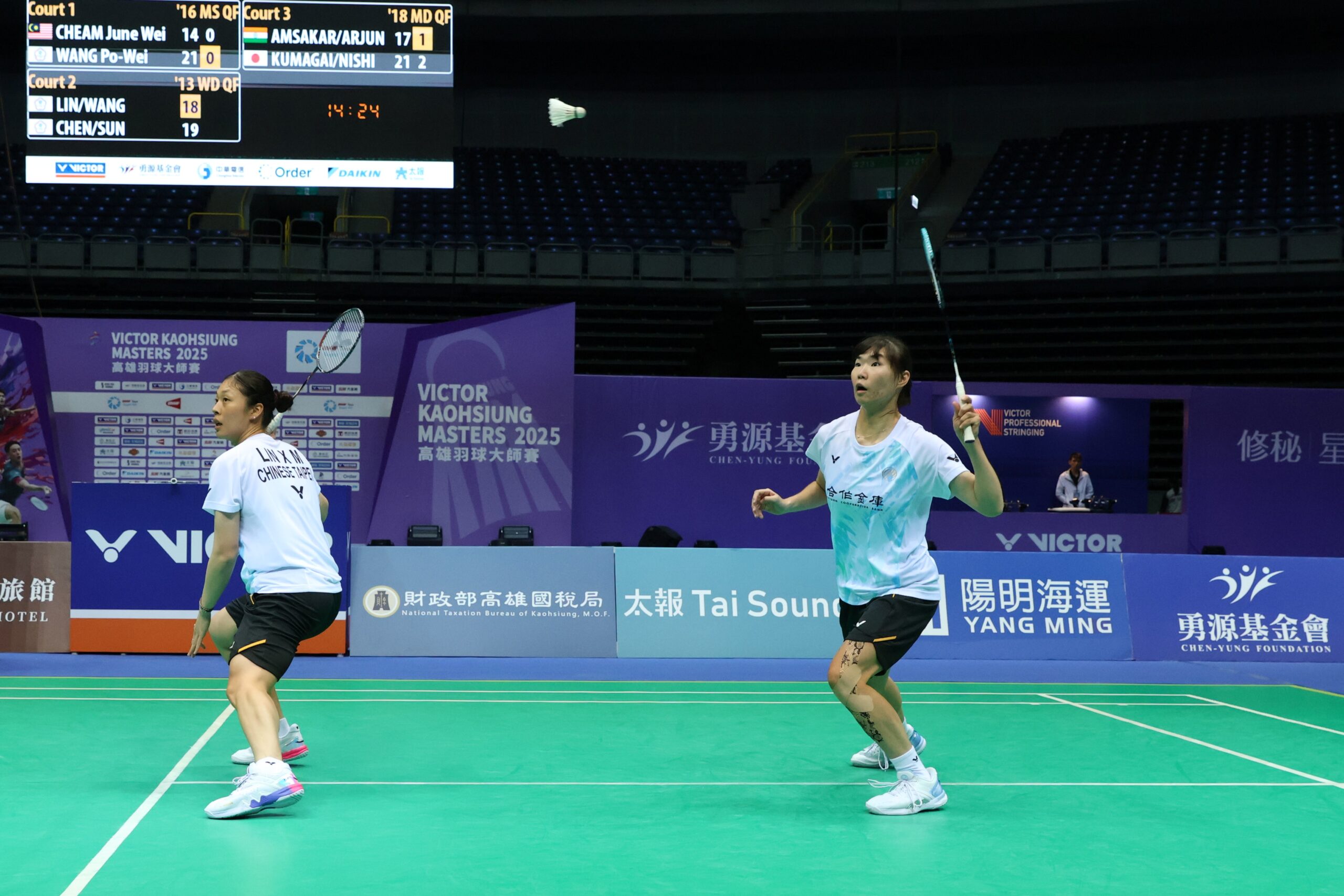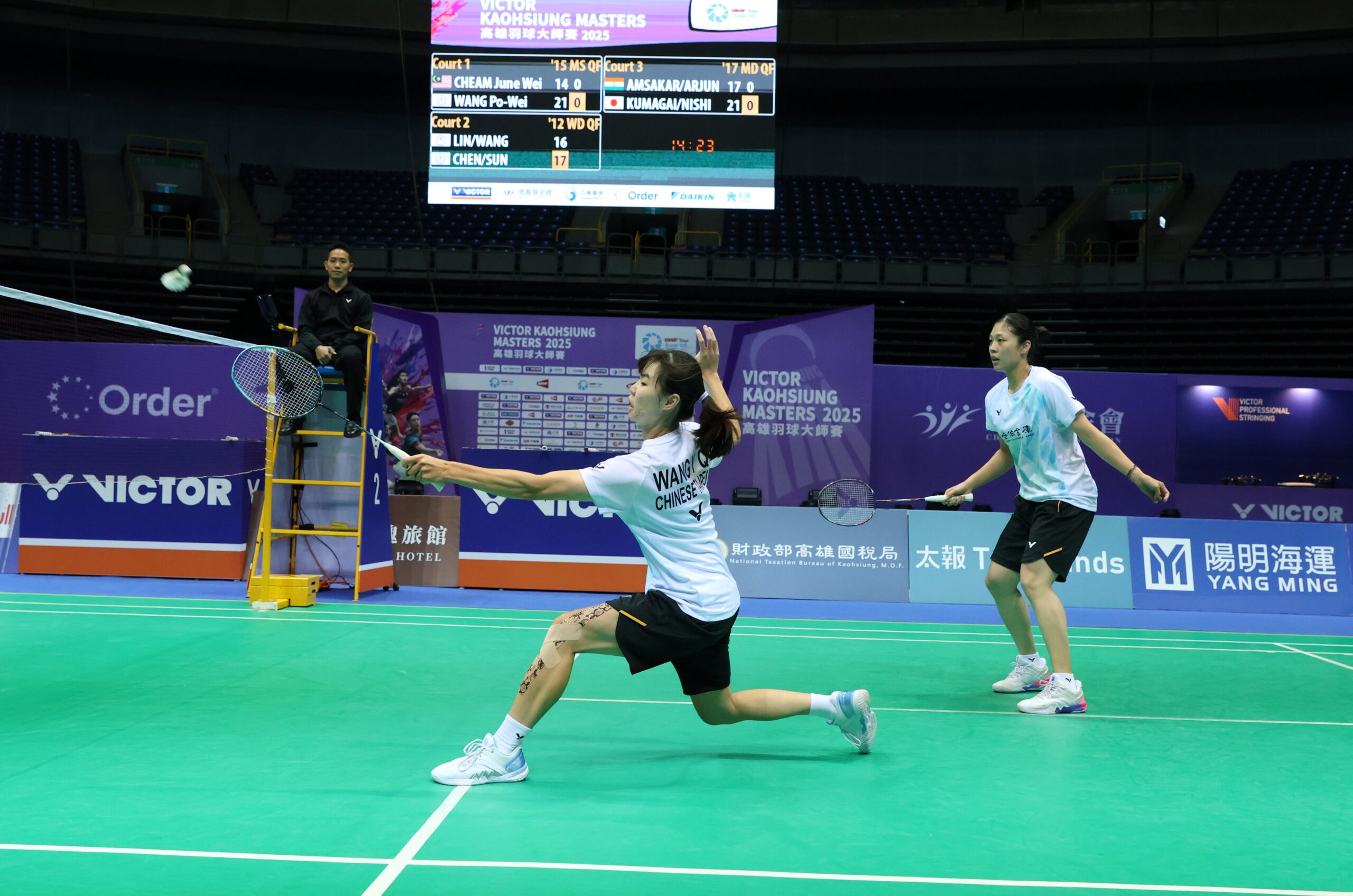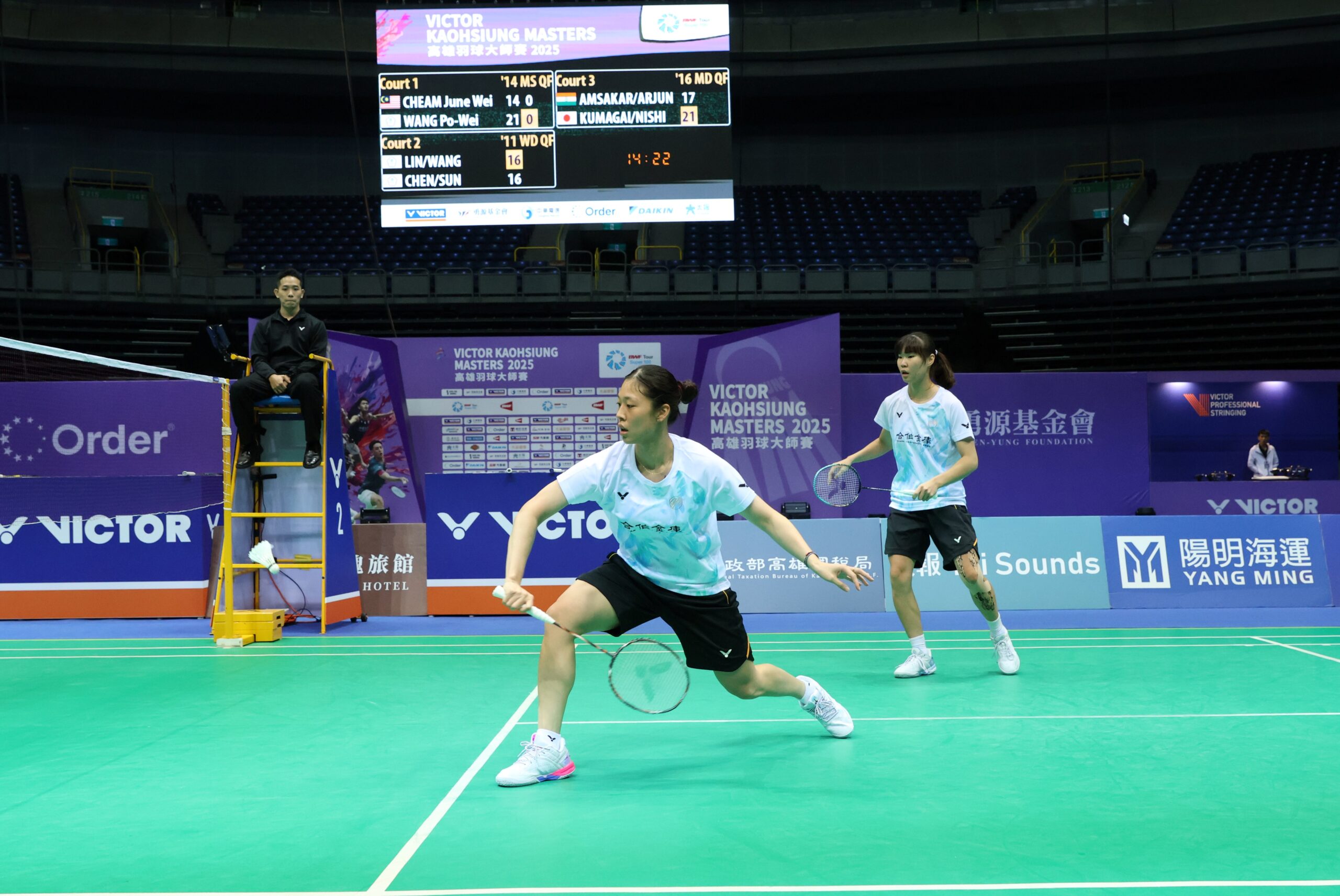 大師賽女雙八強賽,台灣兩組女雙提前對決,林筱閔/汪郁喬目前世界女雙排名45,碰上陳妍妃/孫亮晴,世界排名51,雙方實力相當就看臨場發揮。果然前兩局雙方你來我往,各拿下一局,但決勝局陳妍妃/孫亮晴突然陣腳大亂,被林筱閔/汪郁喬打出7比0攻勢,也讓整個局勢底定分出勝負。